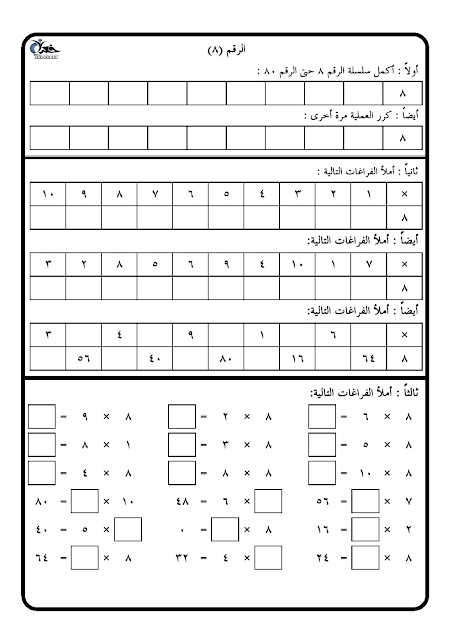 معلومات الملف: ملف يحوي اثنتا عشرة صفحة يتتضمن تدريبات ومهارات على جدول الضرب | ||