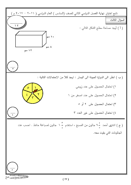 | أحدث ملفات الصف السادس, الامتحانات, الفصل الثاني |