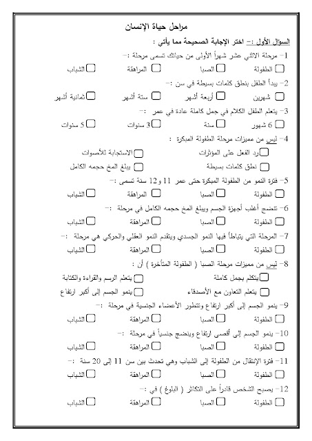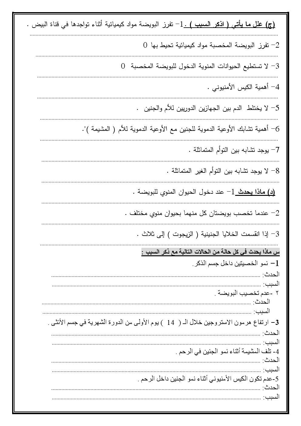15. علوم, الفصل الأول, 2025-2026, أوراق عمل على وحدة التكاثر البشري والانقسام الخلوي