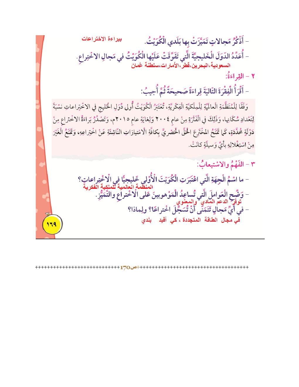| الملاحظات المثبتة في المناهج الكويتية | |