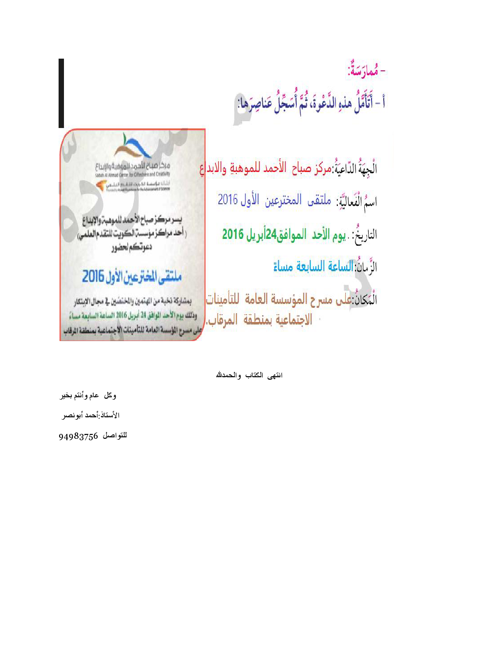 | أنت هنا: موقع المناهج ⇦ المناهج الكويتية ⇦ الصف الثالث ⇦ لغة عربية ⇦ الفصل الثاني ⇦ ملفات متنوعة |
