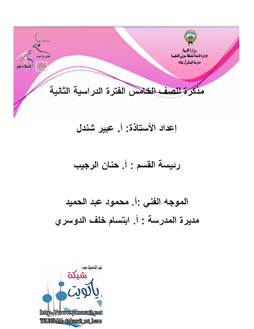 أنت هنا: موقع المناهجالمناهج الكويتية الصف الخامس لغة عربية الفصل الثاني مذكرات وبنوك