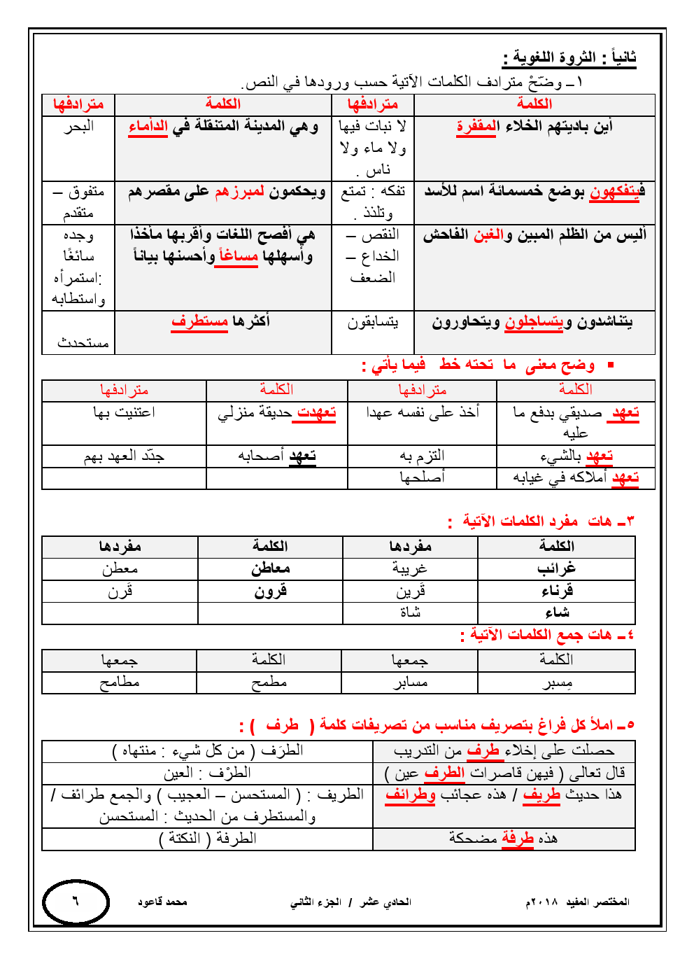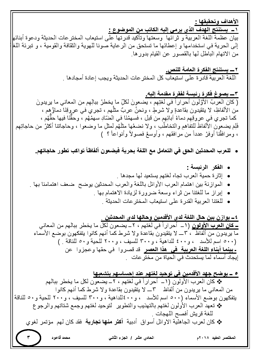 معلومات الملف: المختصر المفيد في اللغة العربية للصف الحادي عشر في عشر صفحات | ||