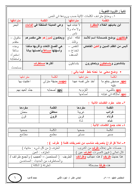 أحدث ملفات الصف الحادي عشر, لغة عربية, الفصل الثاني