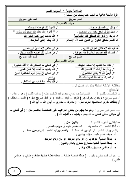 المختصر المفيد في اللغة العربية للصف الحادي عشر في عشر صفحات