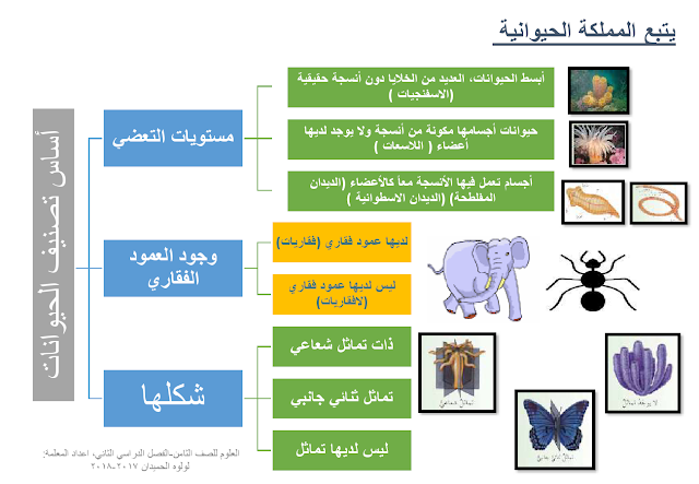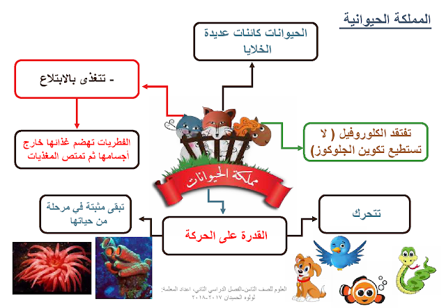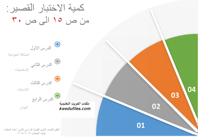 ملف انفوجرافيك للاختبار القصير للصف الثامن لمادة العلوم من الصفحة 15 الى الصفحة 30  يحوي المملكة الحيوانية بكل انواعها