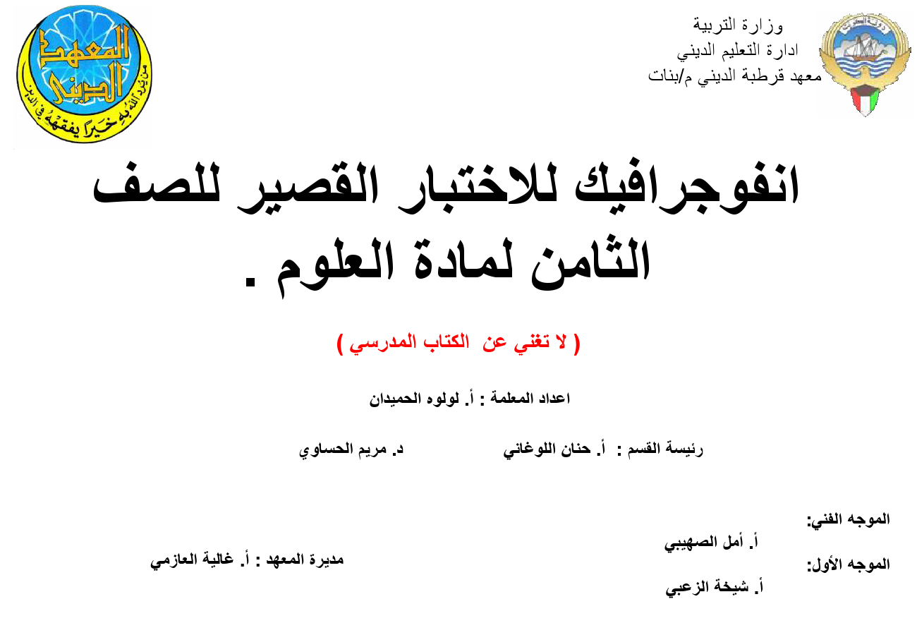 انفوجرافيك للاختبار للصف الثامن علوم - إعداد: لؤلؤة الحميدان