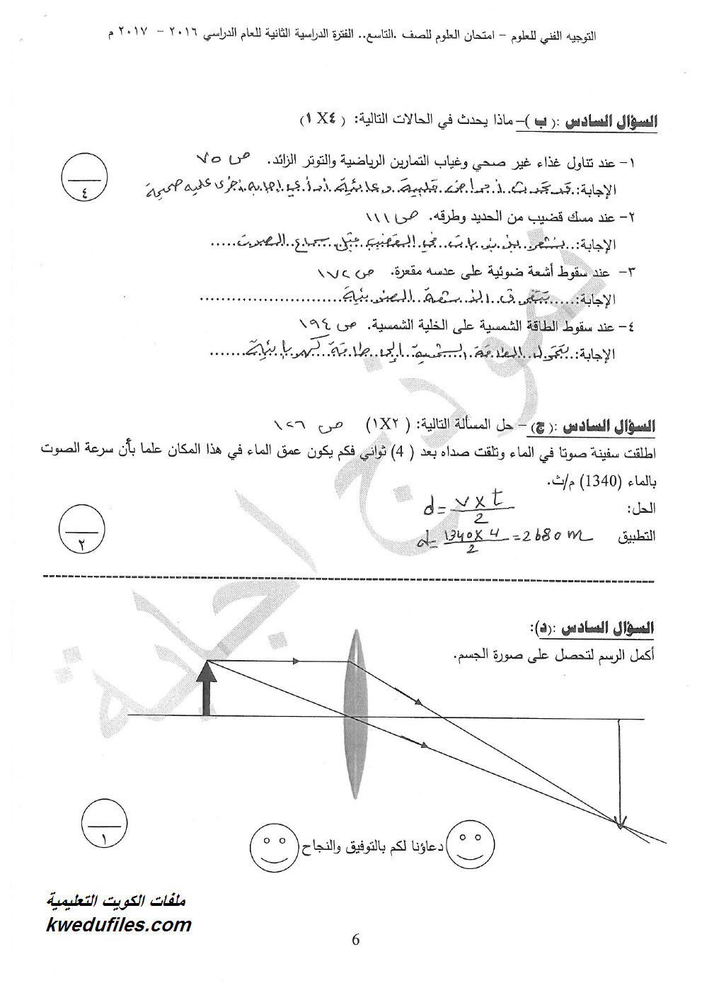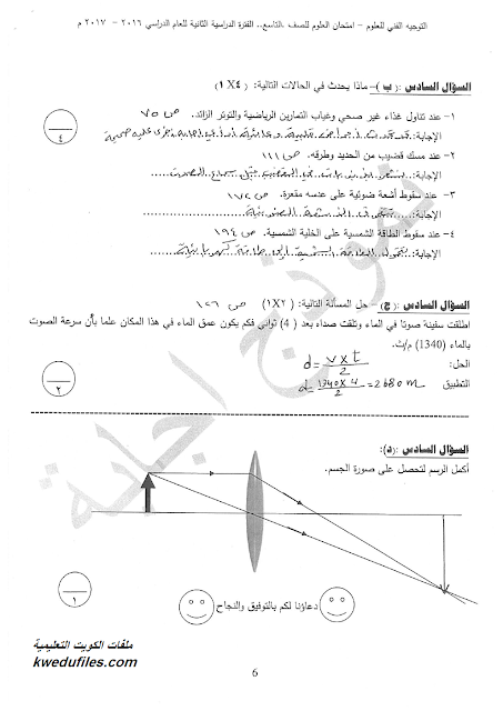 9. نموذج أسئلة منطقة الجهراء التعليمية