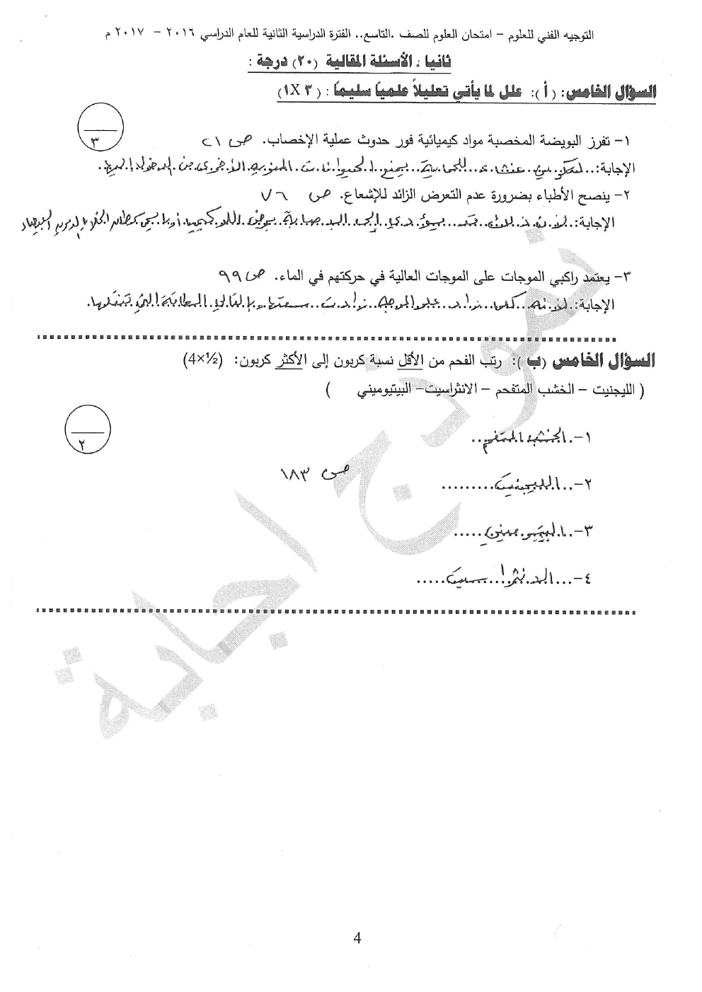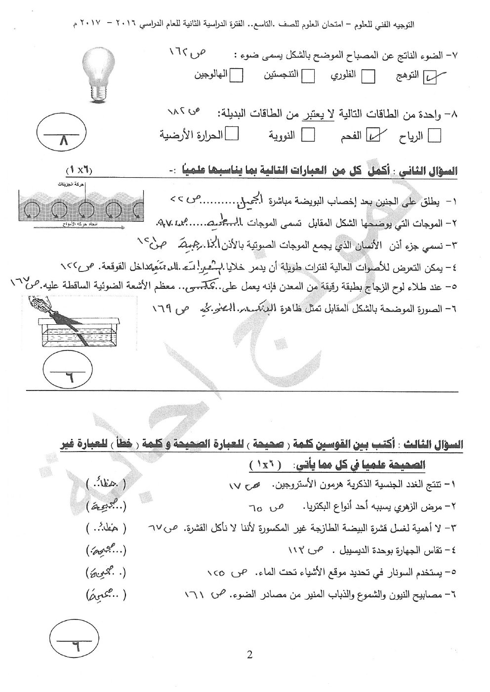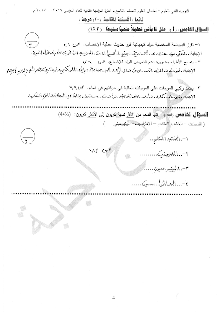 ملف يحوي نموذج الاجابة في مادة العلوم للصف السادس
