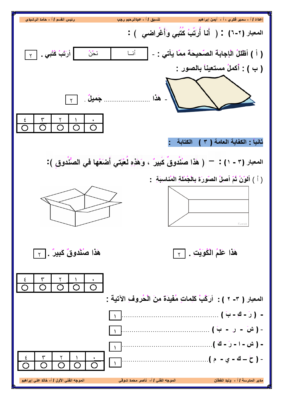 7. لغة عربية, الفصل الأول, 2025-2026, أوراق عمل على الاختبار القصير الأول