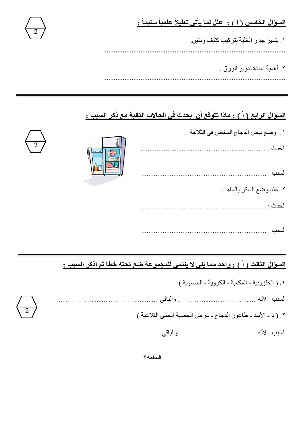 | اختبار تجريبي ممتاز في مادة العلوم - إعداد: حسن الوزان | ||