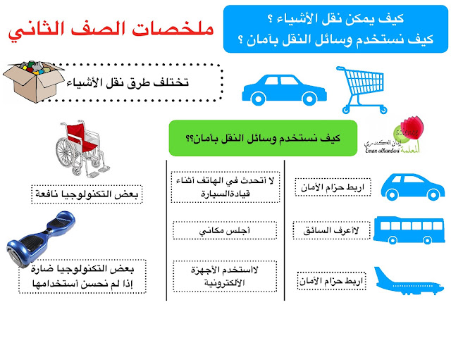 3 اوراق في مادة العلوم للصف الثاني للفصل الدراسي الثاني تتضمن مخططات للمغناطيس والحي السكني ونقل الاشياء