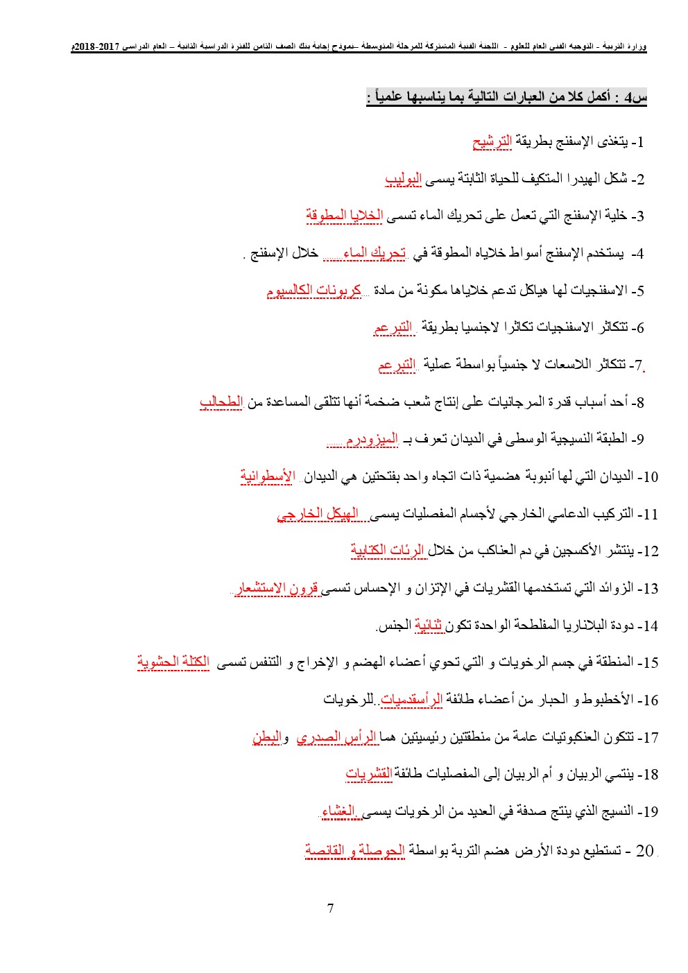 4. نموذج إجابة منطقة الجهراء التعليمية