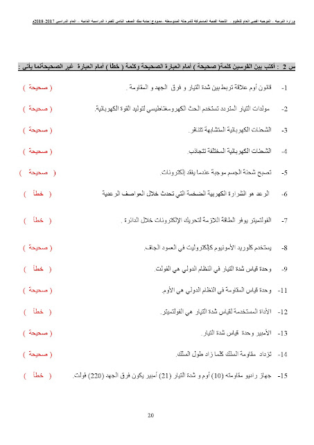 3. إجابة الاختبار النهائي لمنطقة حولي التعليمية