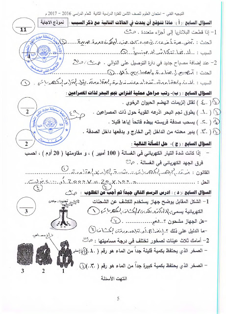 3. إجابة الاختبار النهائي لمنطقة حولي التعليمية