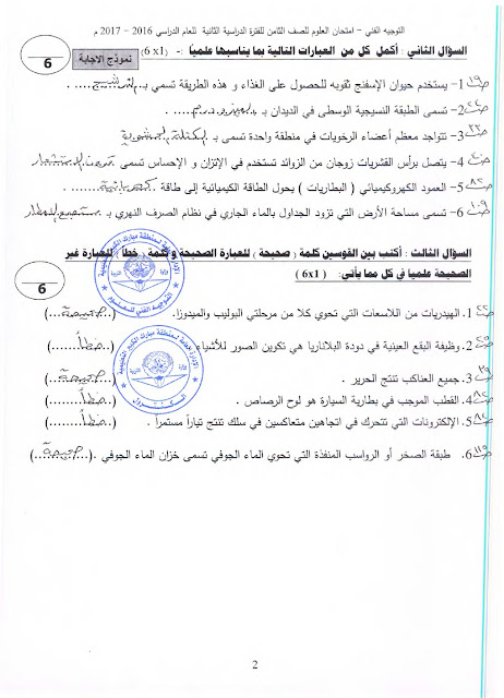 معلومات الملف: 6 اوراق في مادة العلوم للصف الثامن للفصل الدراسي الثاني يتضمن نموذج اجابة اختبار تابع للادارة العامة لمنطقة مبارك الكبير التعليمية المدة اللازمة ساعتين وربع | ||