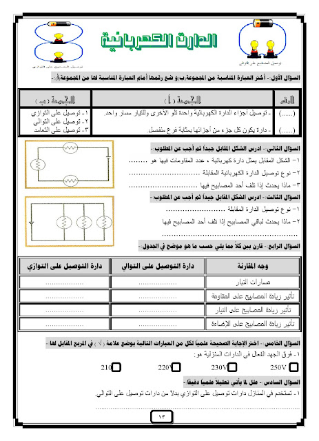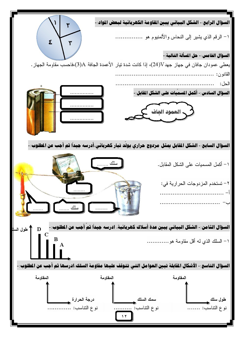 اوراق عمل في مادة العلوم - إعداد: مدرسة احمد الفارسي | ||