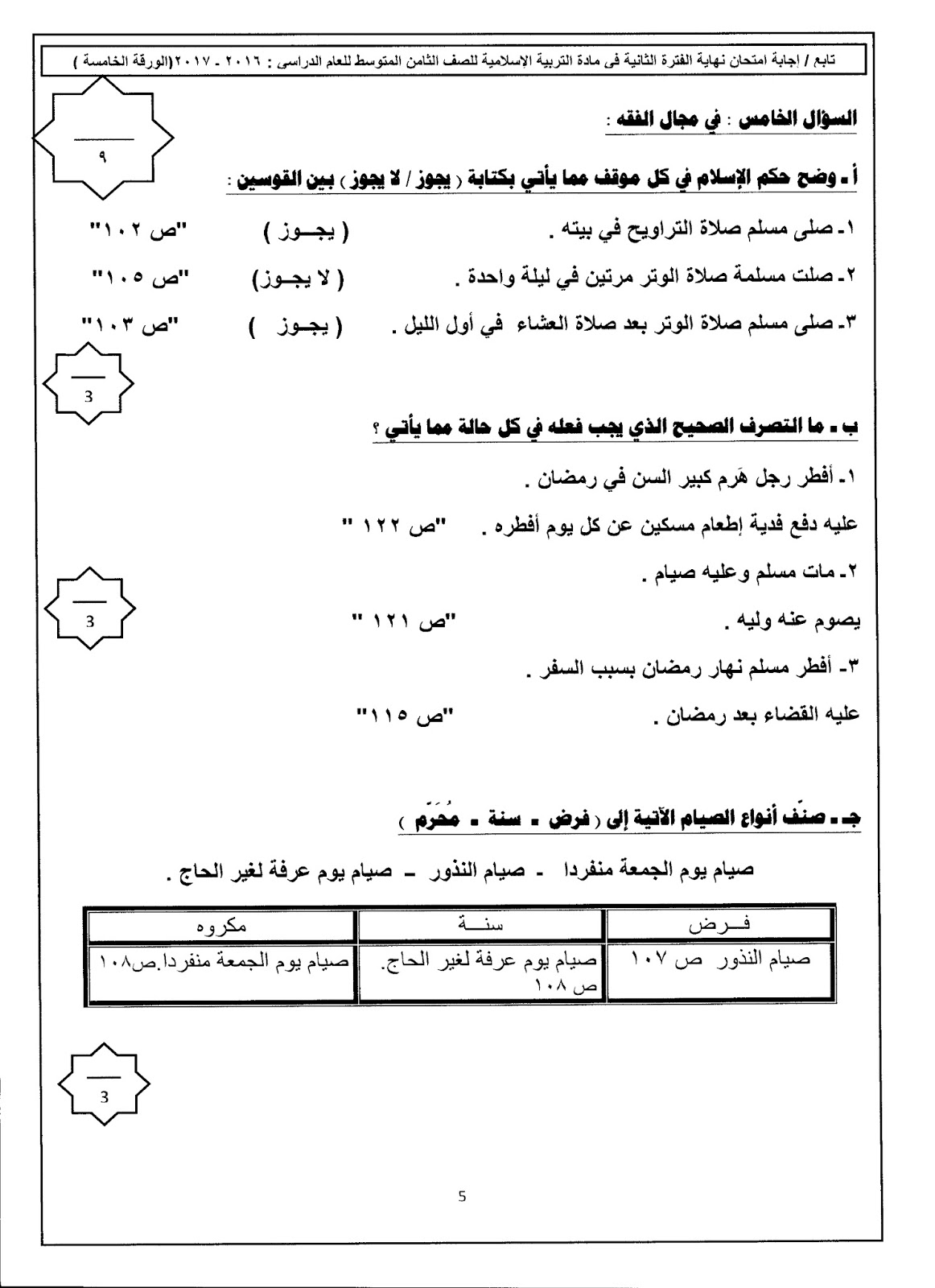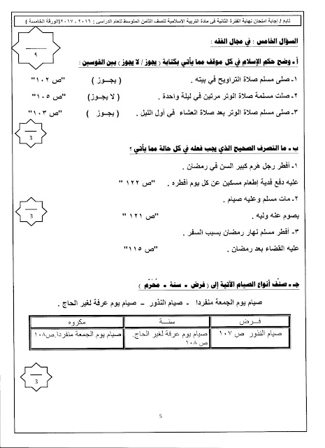 معلومات الملف: نموذج اجابة اختبار للصف الثامن في مادة التربية الاسلامية في ثمان صفحات | ||