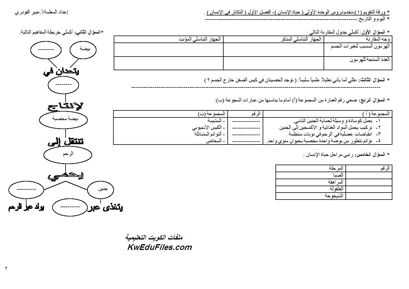 معلومات الملف: ملف يتضمن اسئلة تقويمية في مادة العلوم للصف التاسع حيث تتوزع الاسئلة في سبع ورقات وكل ورقة تخدم وحدة تعليمية | ||