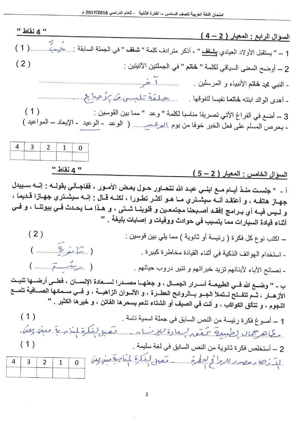 تم إيجاد الملف: نموذج اجابة اختبار في مادة اللغة العربية