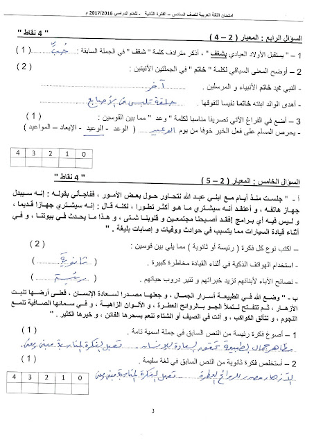 | أحدث ملفات الصف السادس, الامتحانات, الفصل الثاني |
