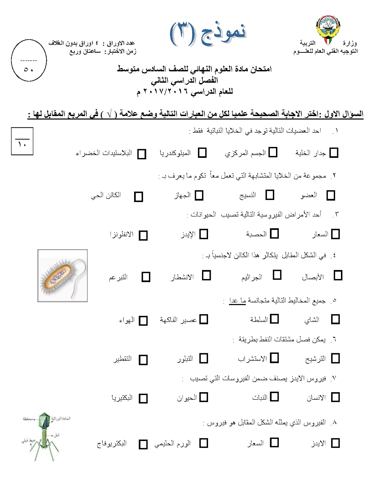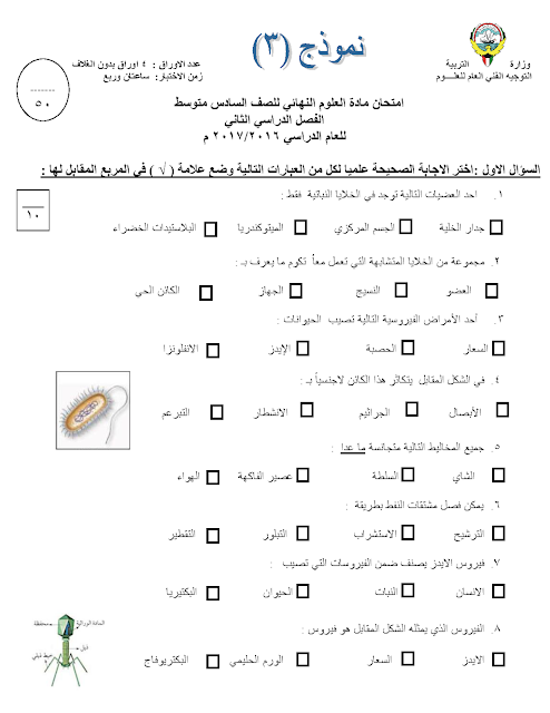8. نموذج أسئلة منطقة حولي التعليمية