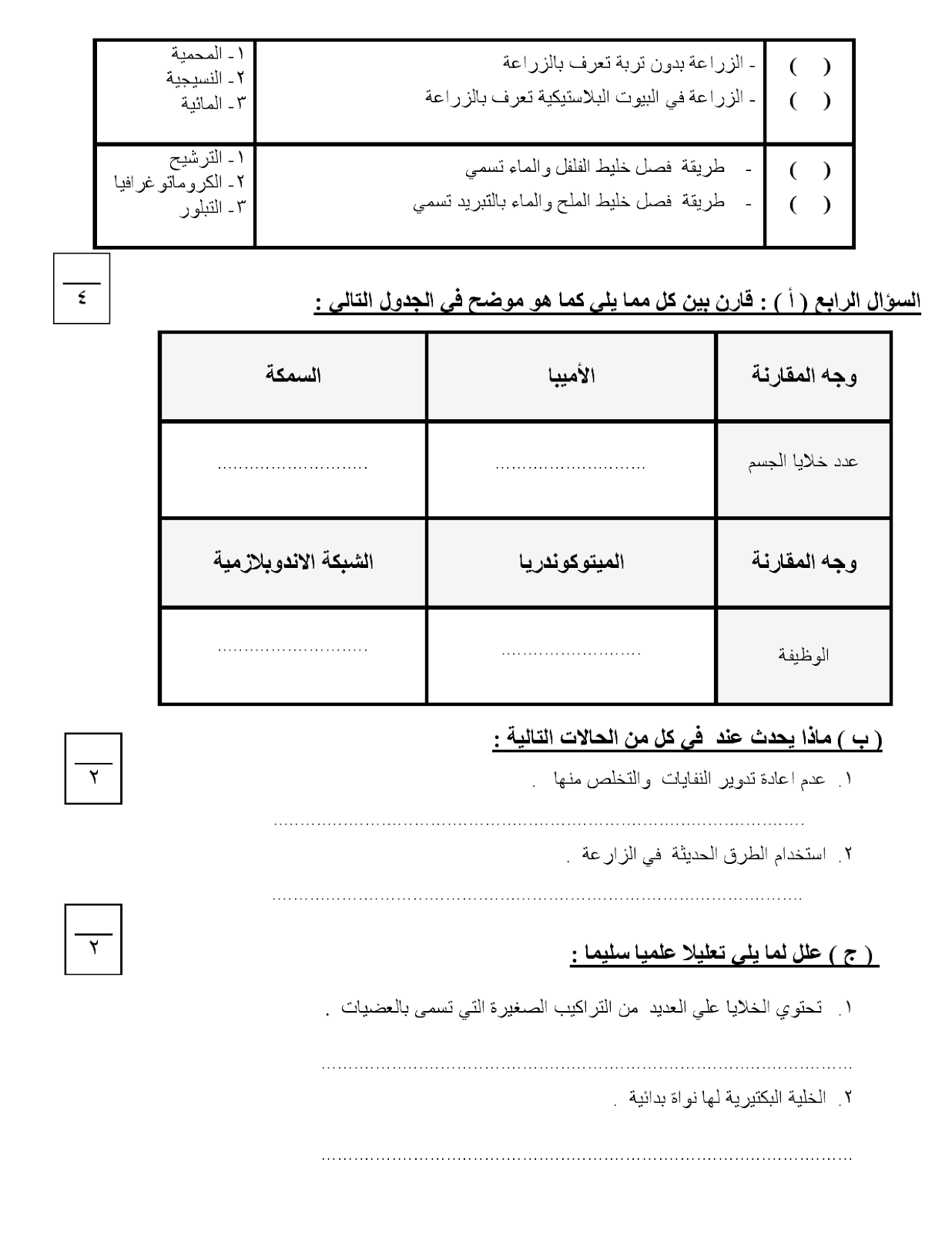 امتحان مادة العلوم النهائي للصف السادس متوسط يتضمن اربع صفحات بأربعة اسئله غير محلوله