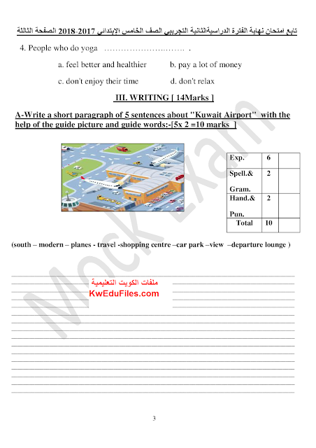 5th grade mock exams - إعداد: التوجيه الفني للغة الانكليزية