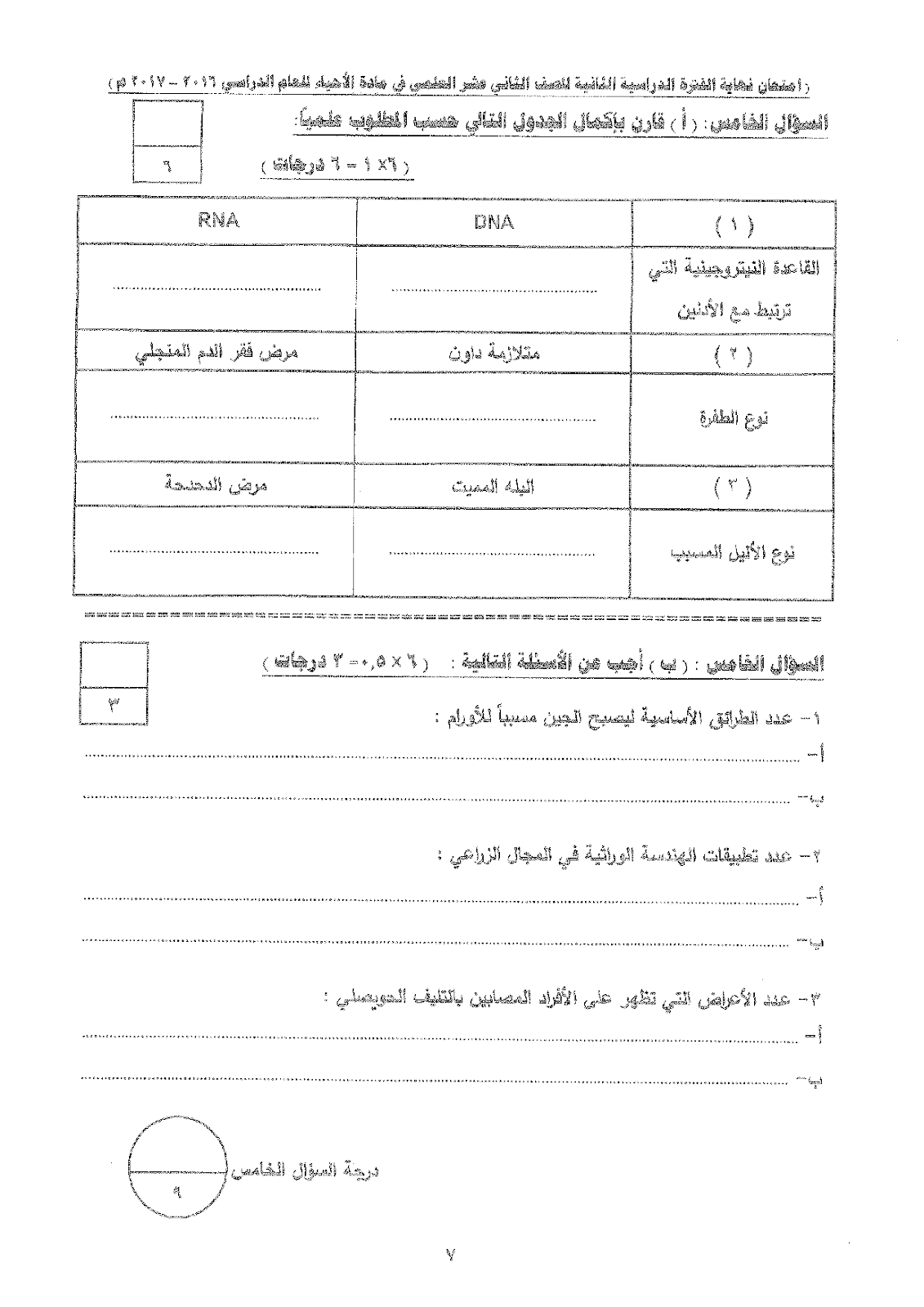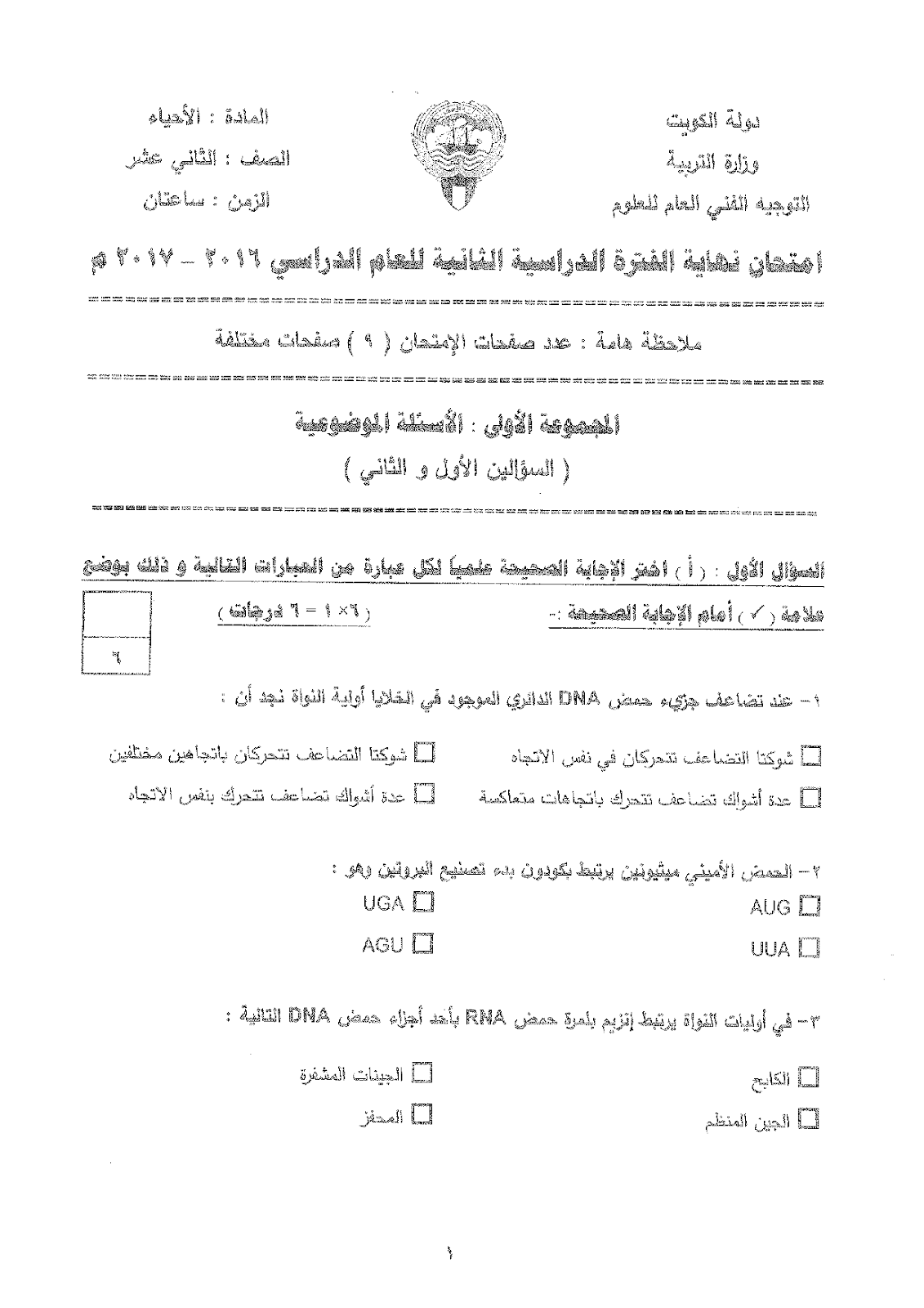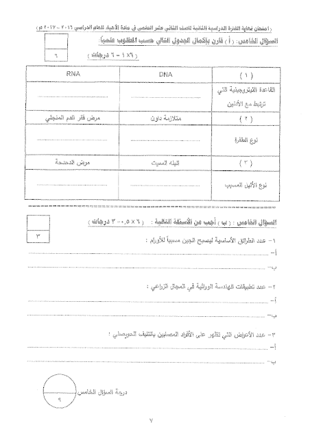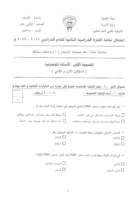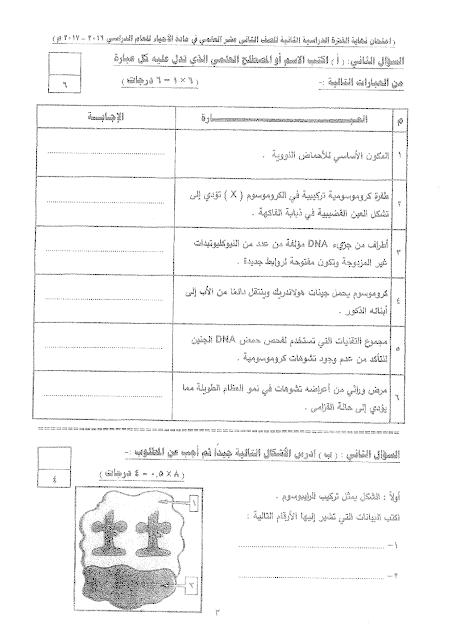 معلومات الملف: امتحان نهاية الفترة الدراسية الثانية لمادة الاحياء للصف الثاني عشر علمي في عشر صفحات | ||