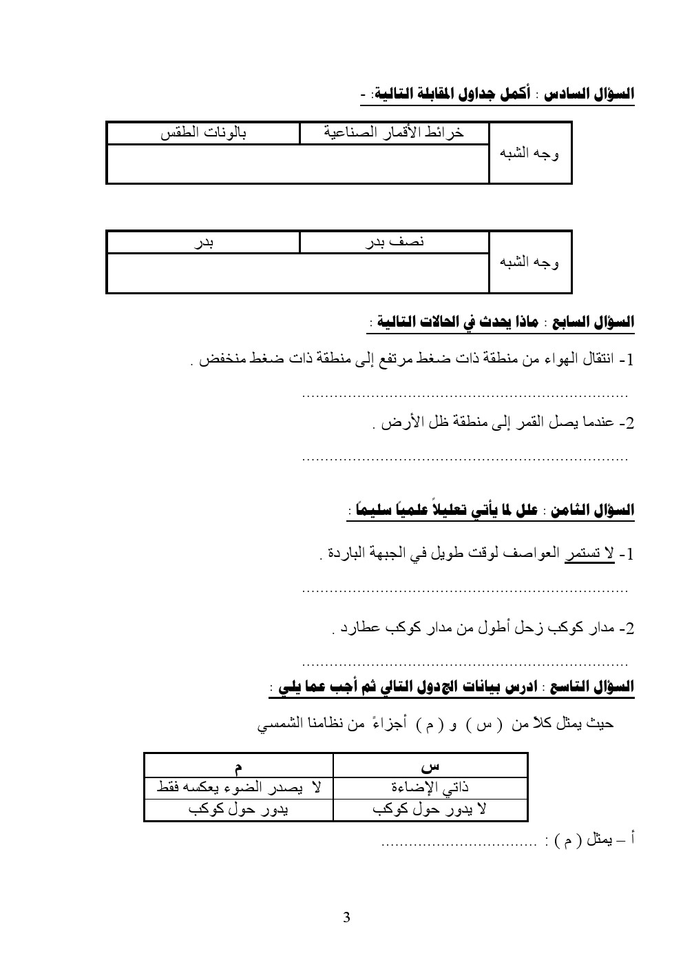 | نموذج اختبار ثالث في مادة العلوم | ||