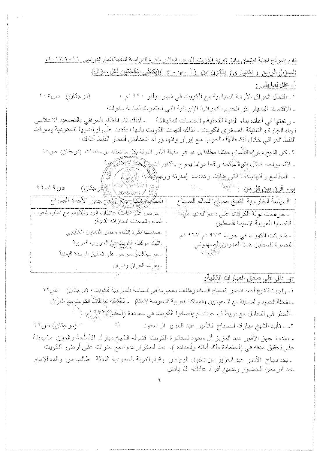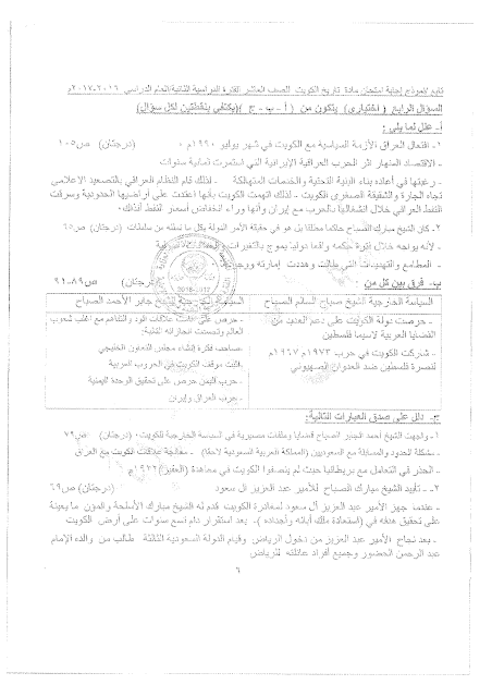 10. مذكرة الصفوة الإثرائية للفصل الخامس الأوضاع الداخلية والخارجية في دولة الكويت