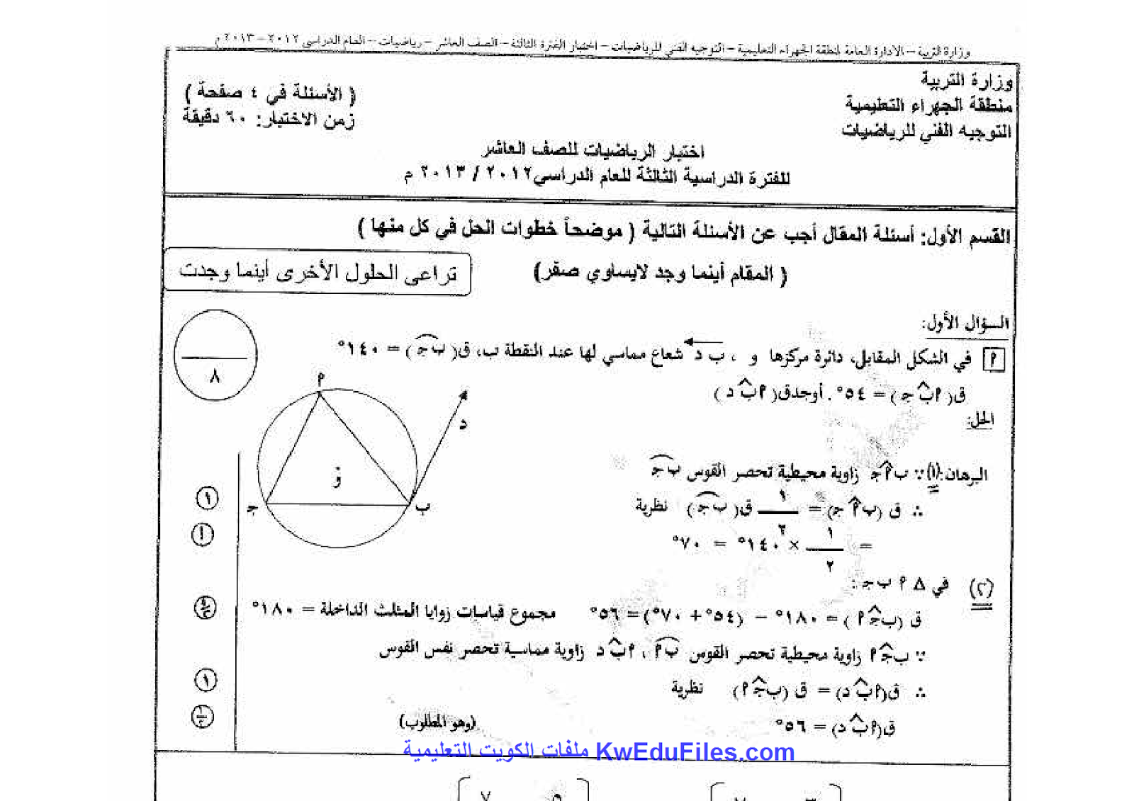 | أنت هنا: موقع المناهج ⇦ المناهج الكويتية ⇦ الصف العاشر ⇦ رياضيات ⇦ الفصل الثاني ⇦ الامتحان النهائي |
