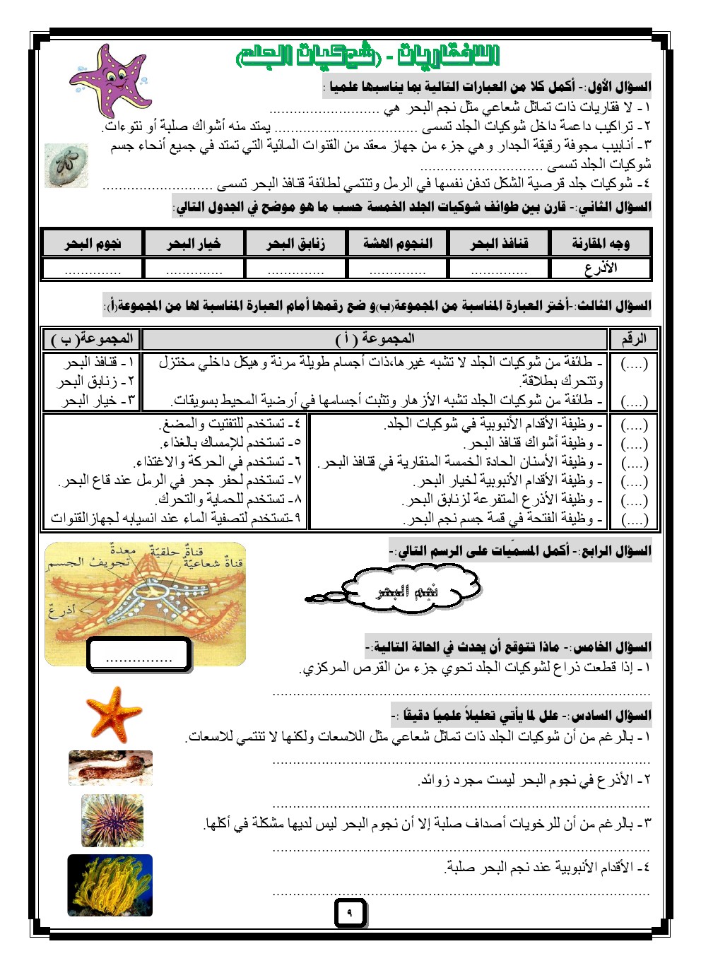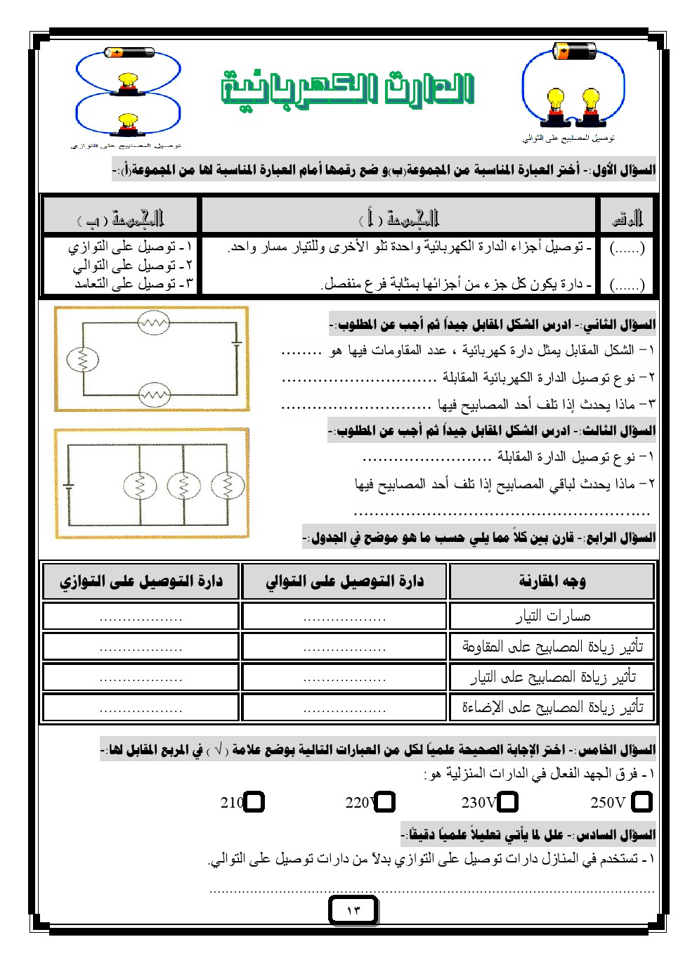 اوراق عمل مهمة في مادة العلوم - إعداد: مدرسة احمد الفارسي | ||