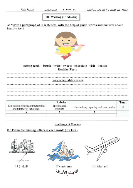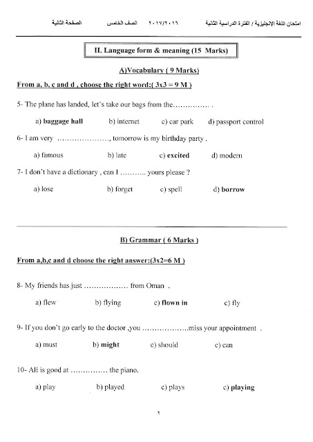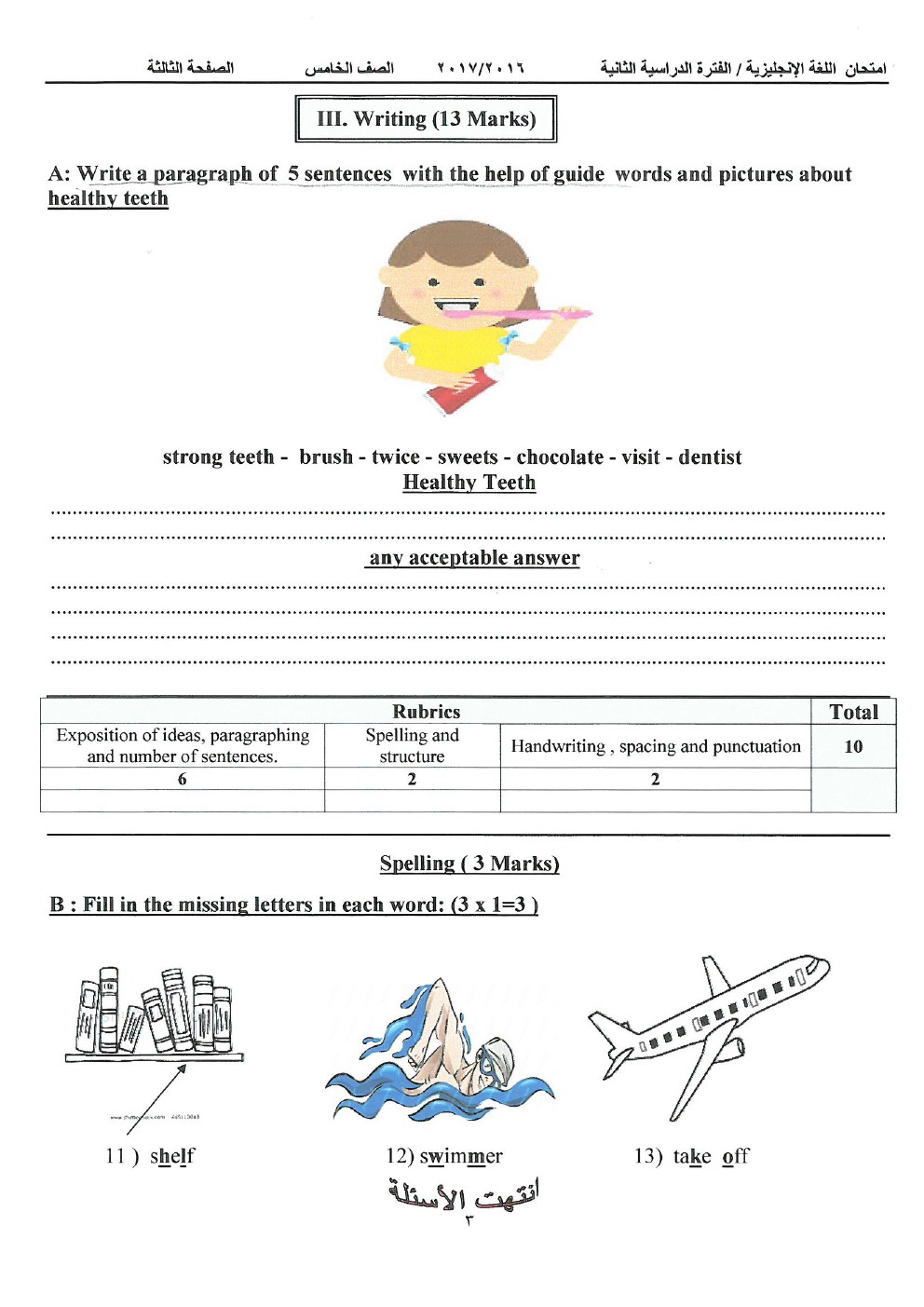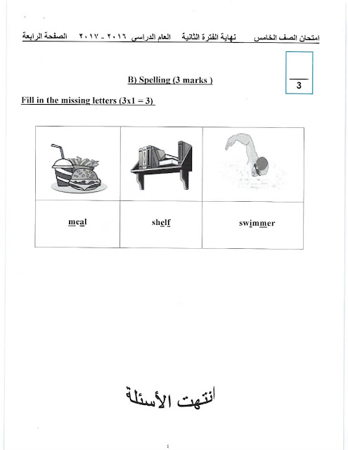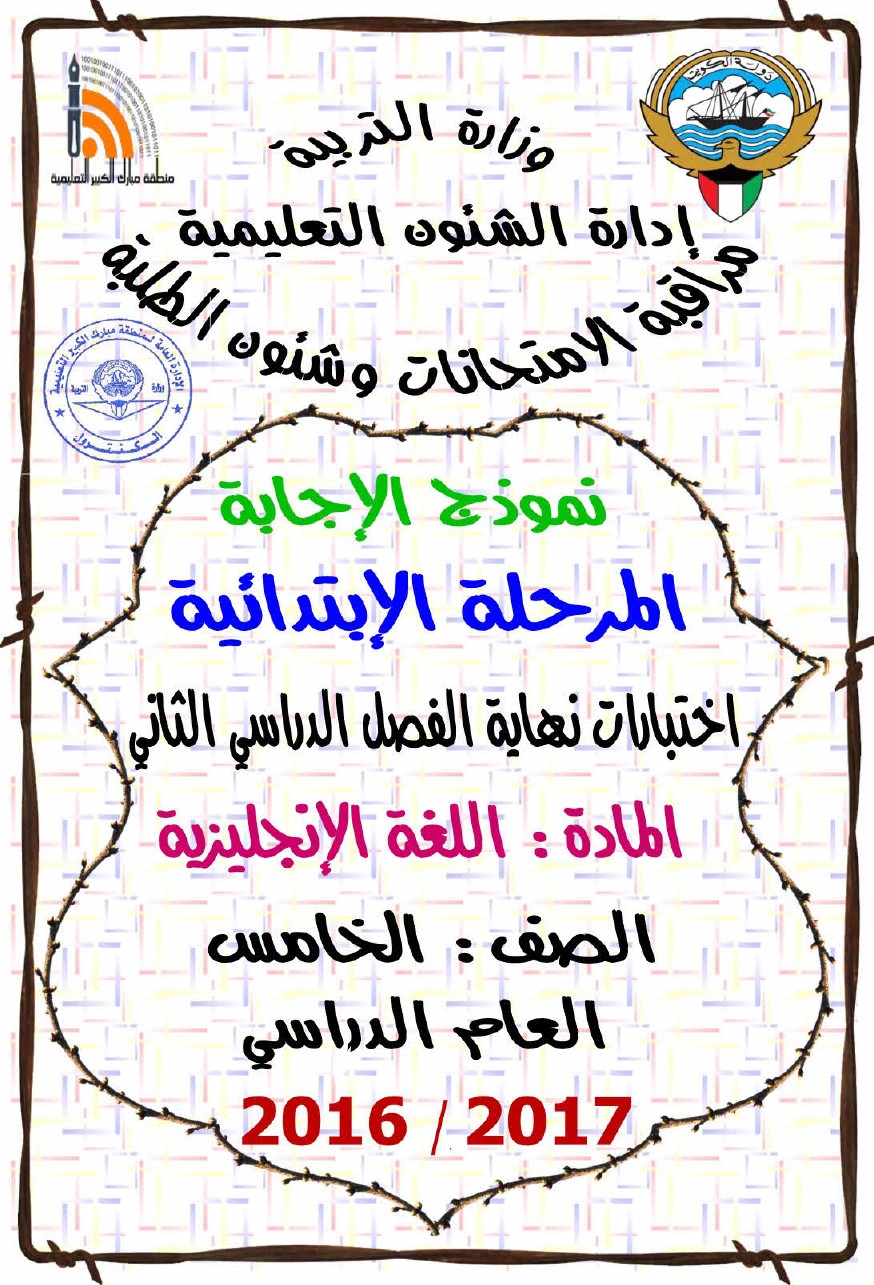 معلومات الملف: 16 ورقة في مادة اللغة الانكليزية للصف الخامس للفصل الدراسي الثاني تتضمن نموذج اجابة اختبار تابع للادارة العامة لمنطقة الاحمدي التعليمية | ||
