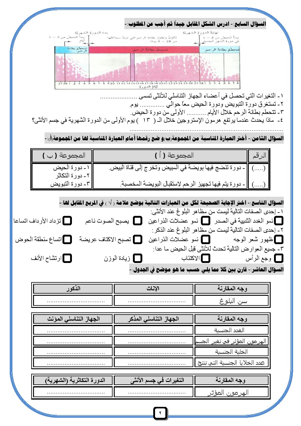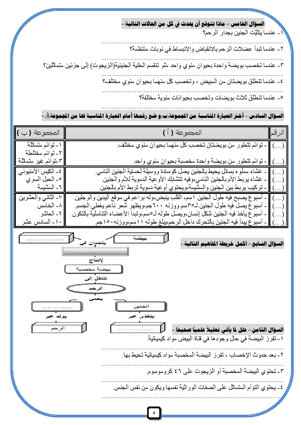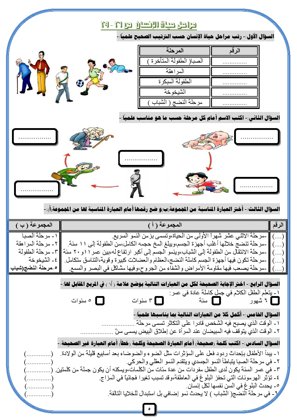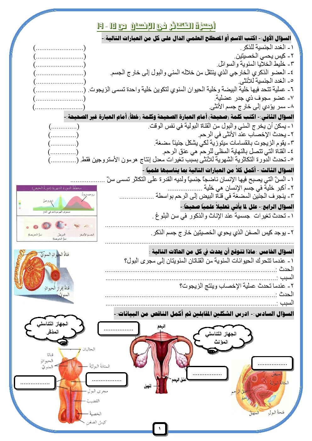 معلومات الملف: يحتوي الملف على اوراق عمل لمادة العلوم للصف التاسع للفصل الدراسي الثاني عدد اوراق هذا الملف 22 ورقة هذه الاوراق تابعة للادارة العامة لمنطقة الاحمدي التعليمية ويتضمن تدريبات على اجهزة التكاثر في الانسان والاخصاب والحمل والولادة وغيرها من التدريبات المفيدة | ||