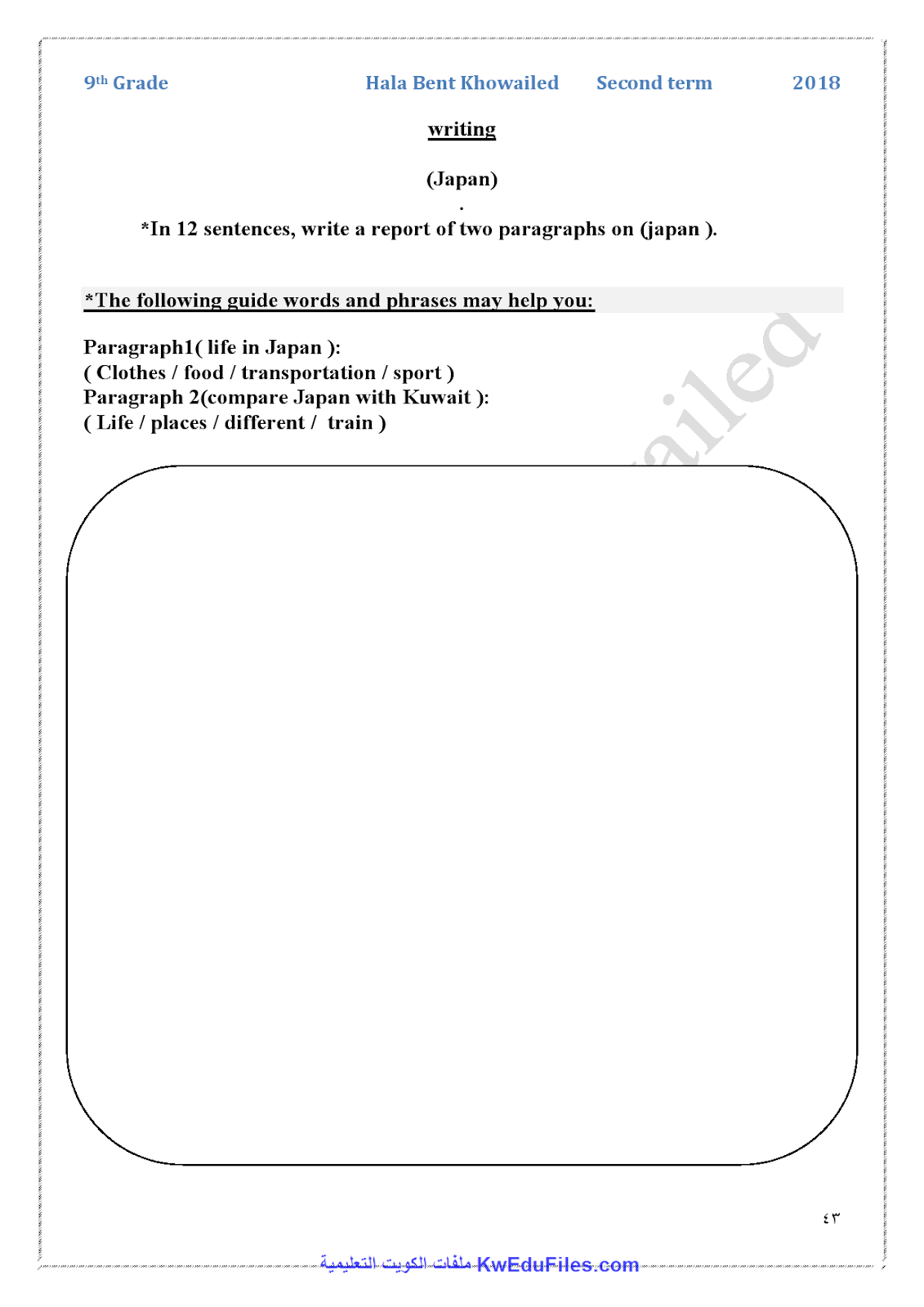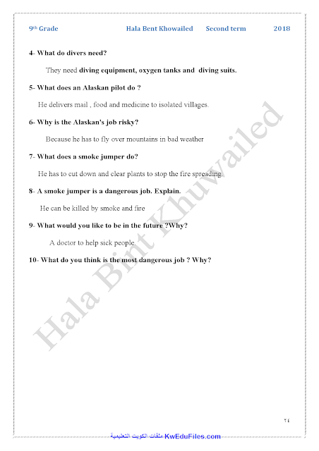 أنت هنا: موقع المناهجالمناهج الكويتية الصف التاسع لغة انجليزية الفصل الثاني حلول