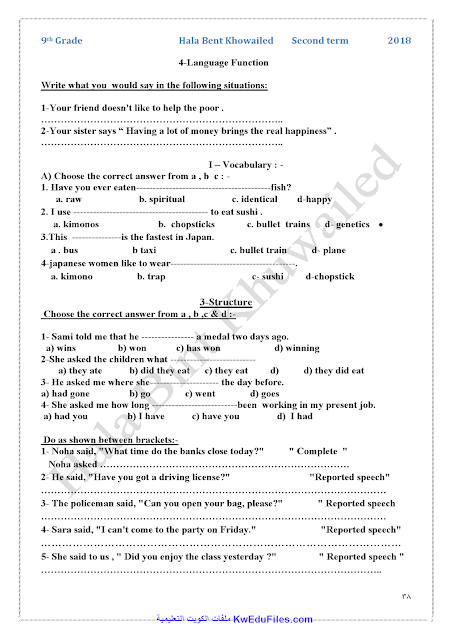 2. إجابة الاختبار النهائي لمنطقة الجهراء التعليمية