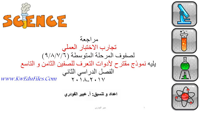 20 ورقة في مادة العلوم لصفوف المرحلة المتوسطة للفصل الدراسي الثاني يتضمنمراجعةتجارب الاختبار العملي لصفوف المرحلة المتوسطة يليه نموذج مقترح لادوات التعرف للصفين الثامن والتاسع
