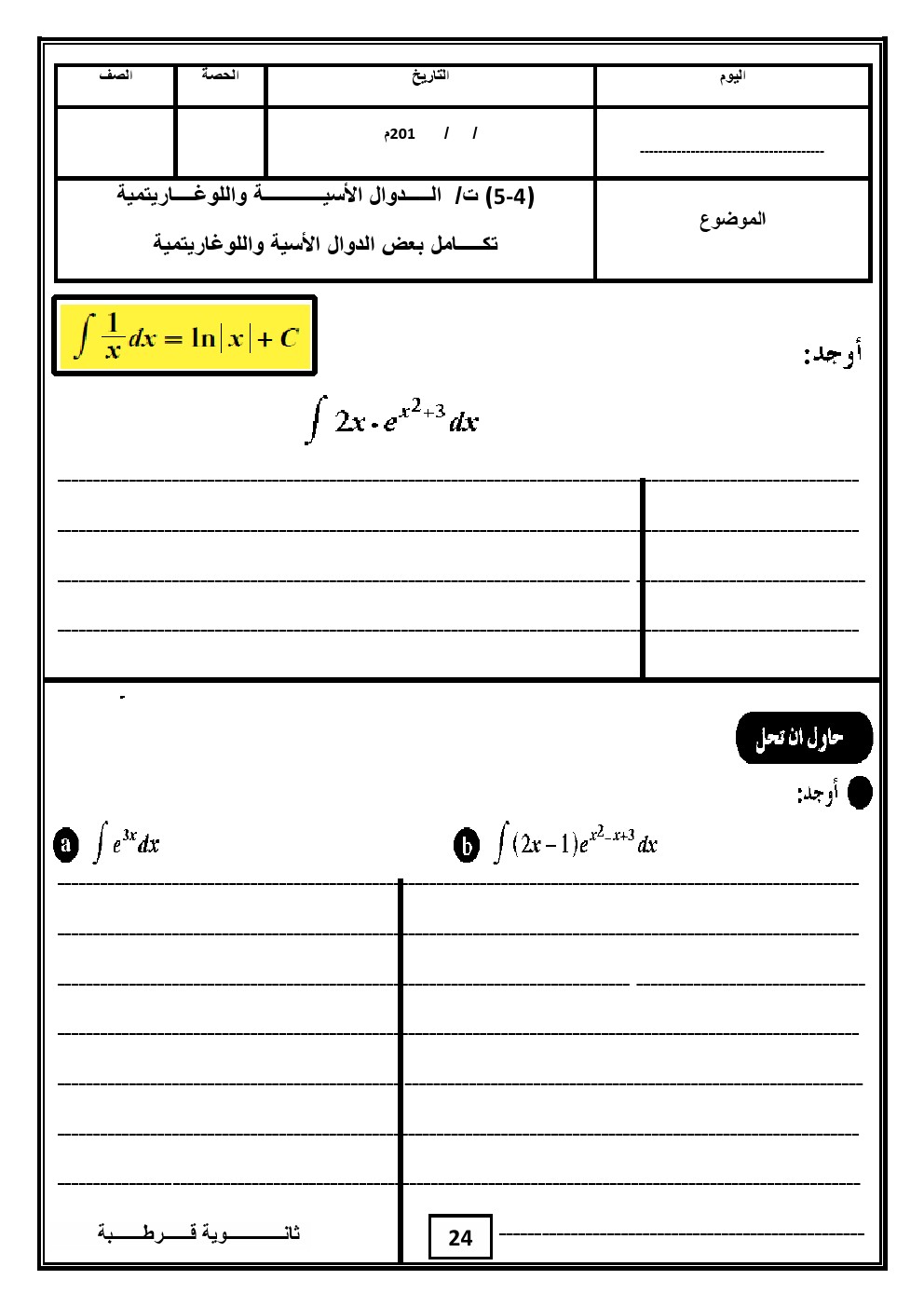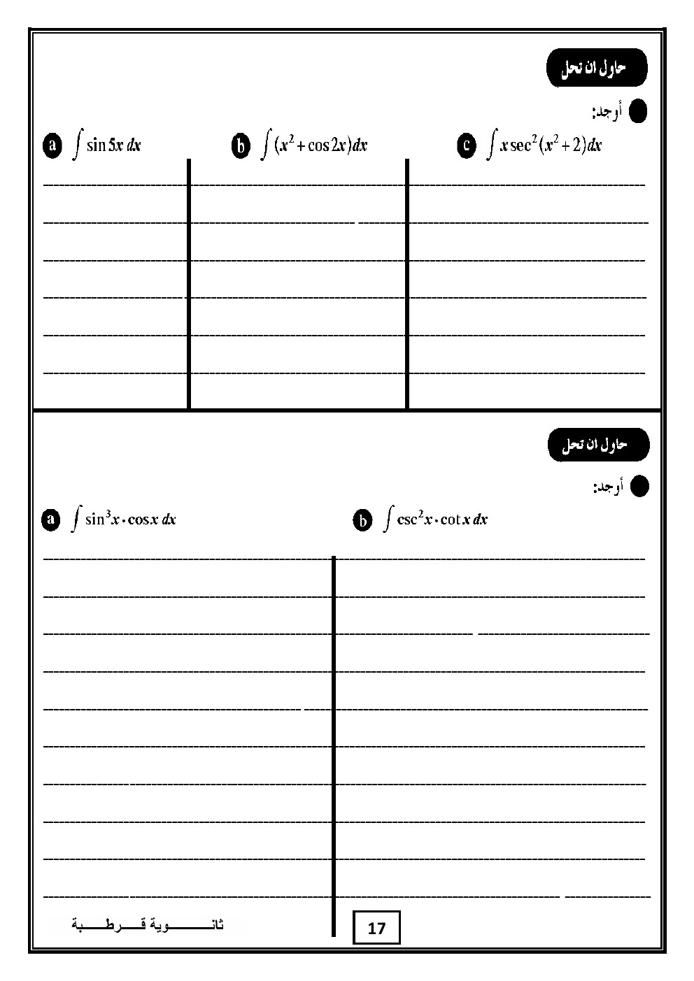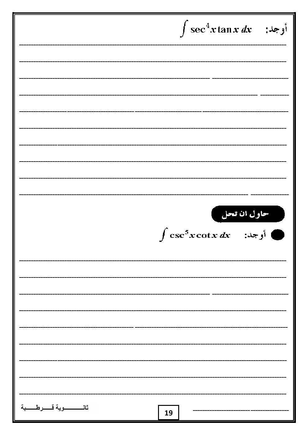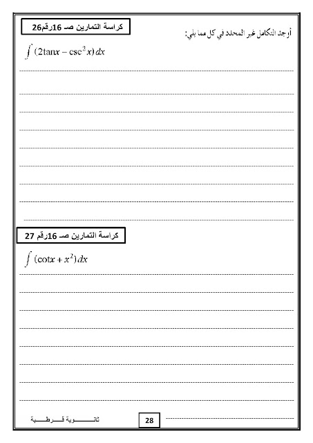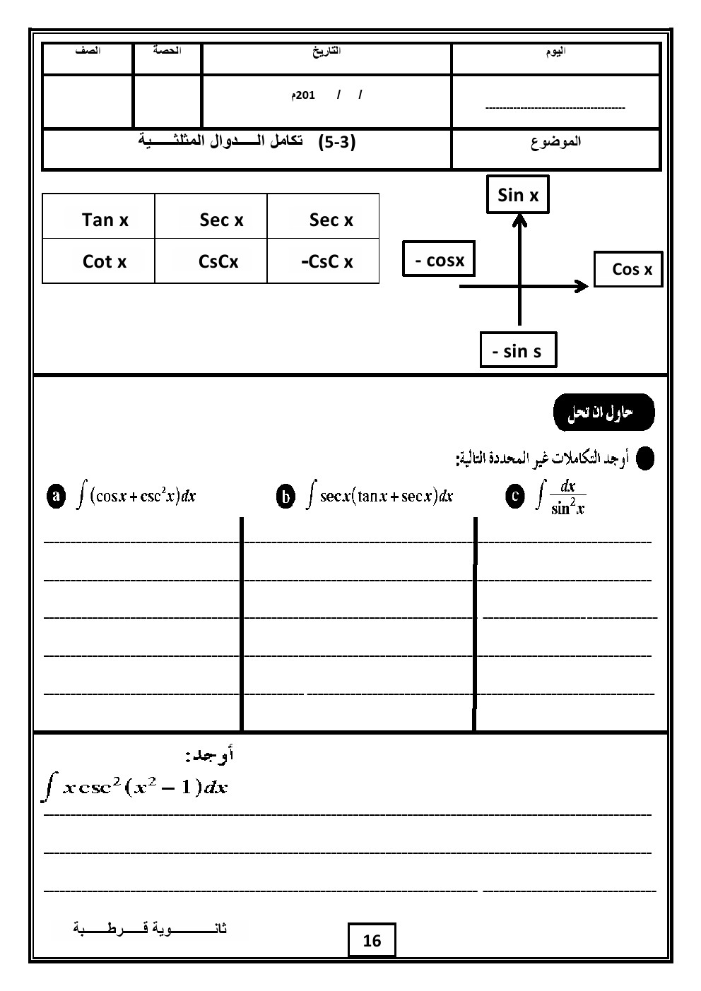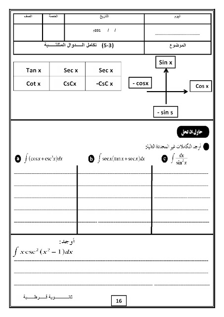1. تكامل الدوال المثلثية في مادة الكيمياء