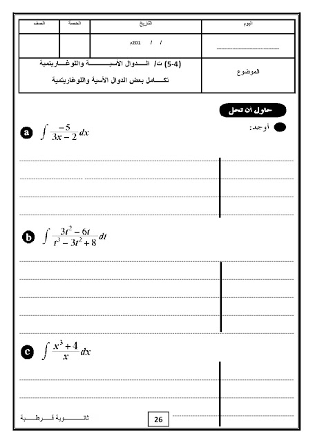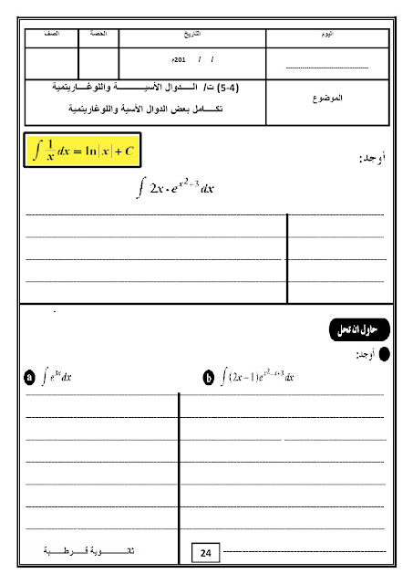 أحدث ملفات الصف الثاني عشر علمي, رياضيات, الفصل الثاني