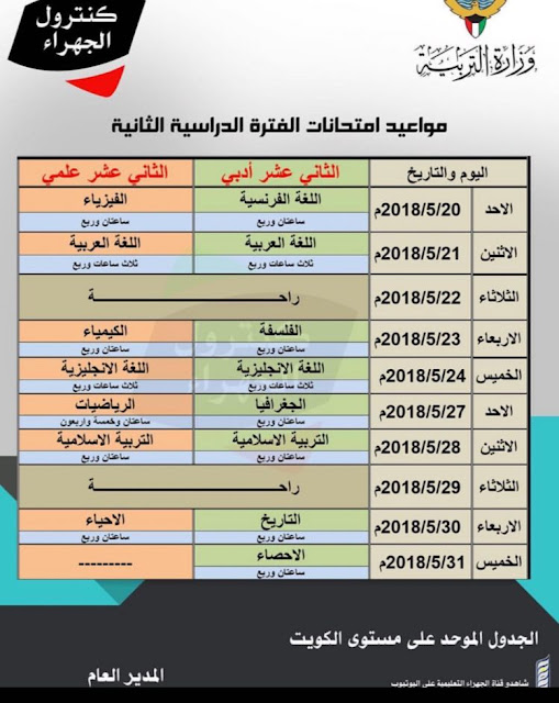 نشرت وزارة التربية الكويتية جدول مواعيد الاختبارات للمرحلة الثانوية للفصل الدراسي الثاني