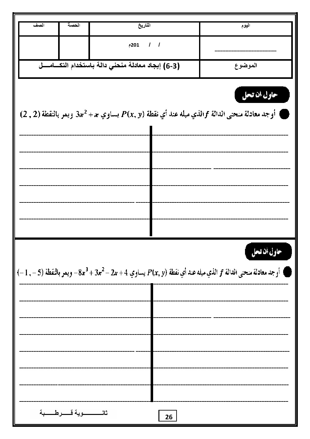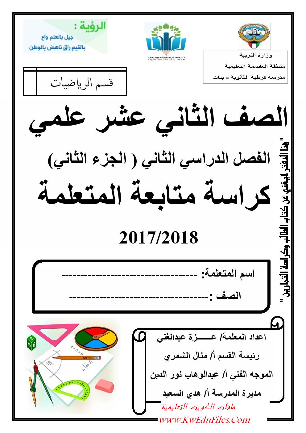 يحتوي الملف على كراسة متابعة التعليمية لمادة الرياضيات للصف الثاني عشر العلمي عدد اوراق هذا الملف 30 ورقة ويتضمن كراسة متابعة التعليمية الجزء الثاني كما يتضمن اسئلة حاول ان تحل اي مسائل
