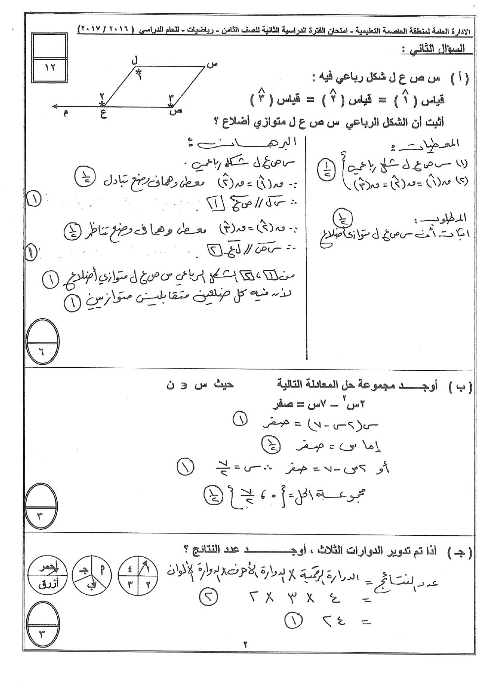 7. نموذج إجابة منطقة العاصمة التعليمية