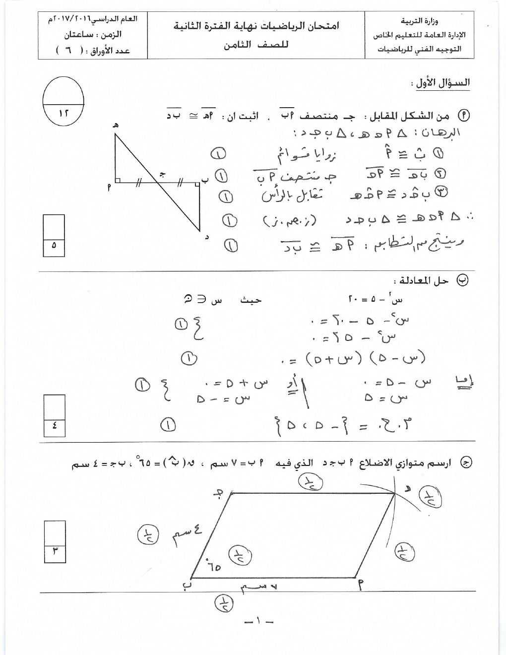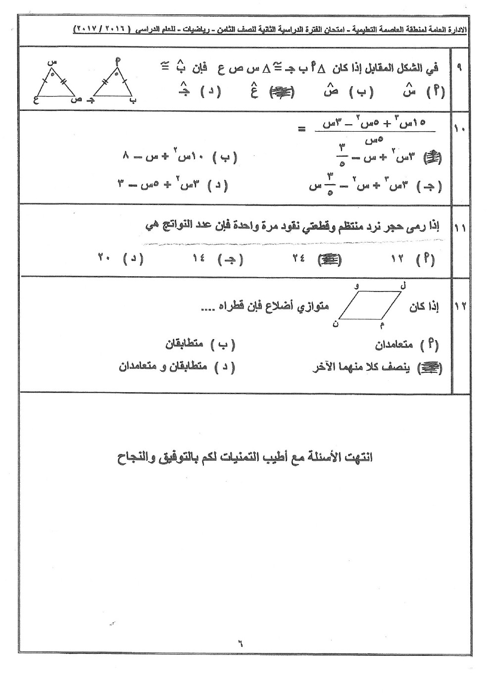 11. نموذج إجابة منطقة حولي التعليمية