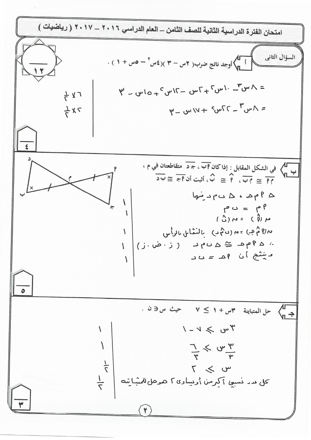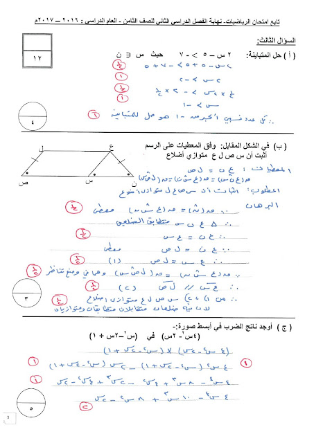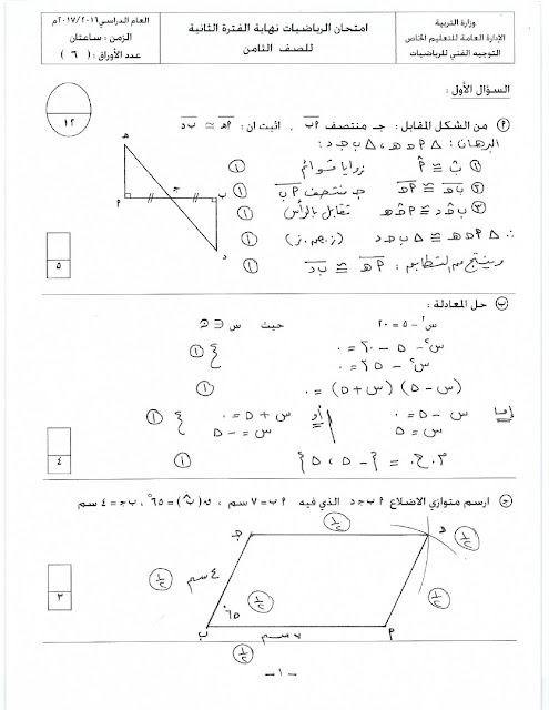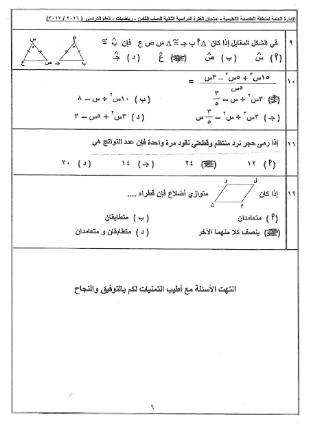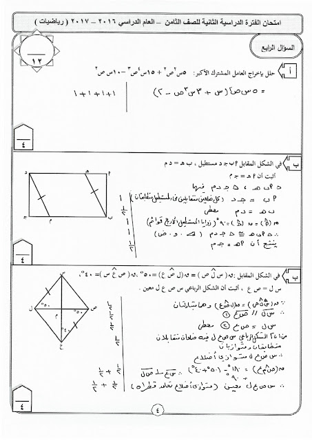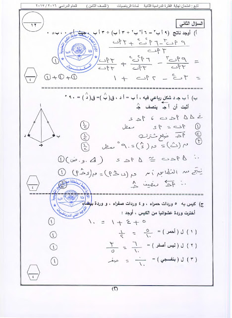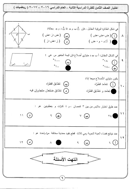 أنت هنا: موقع المناهجالمناهج الكويتية الصف الثامن رياضيات الفصل الثاني الامتحان النهائي