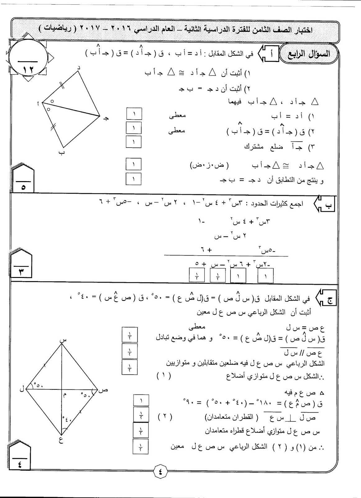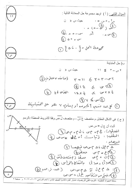 نماذج اختبارات مهمة في مادة الرياضيات