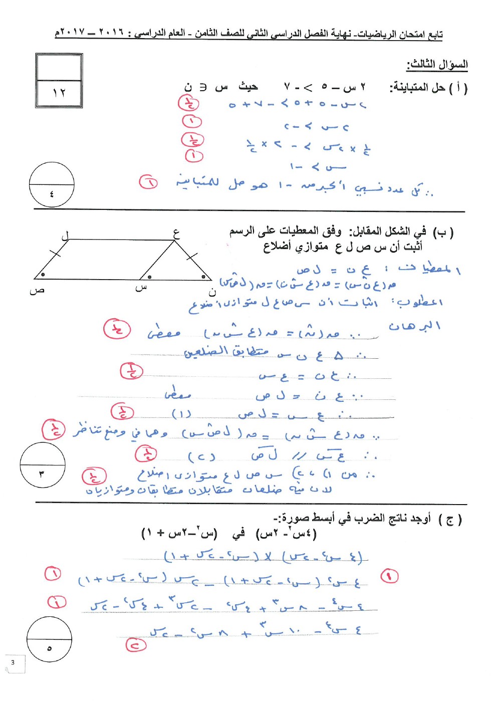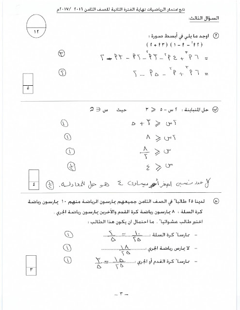 3. إجابة الاختبار النهائي لمنطقة مبارك الكبير التعليمية