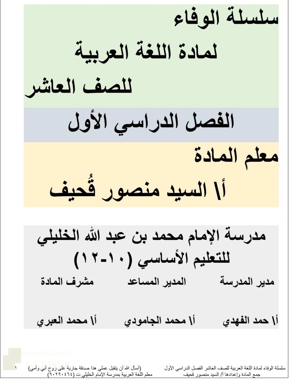 أحدث ملفات الصف العاشر, لغة عربية, الفصل الأول