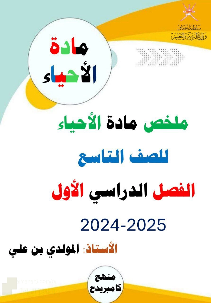 أنت هنا: موقع المناهجالمناهج العمانية الصف التاسع أحياء الفصل الأول ملخصات وتقارير