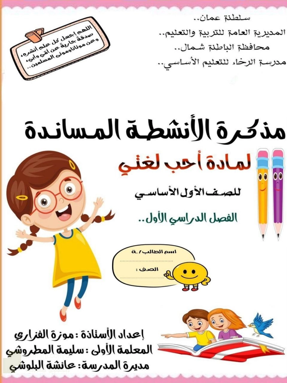 مذكرة الأنشطة المساندة لمادة أحب لغتي, موزة الفزاري, الصف الأول, لغة عربية, الفصل الأول, 2025/2026 - المناهج العمانية